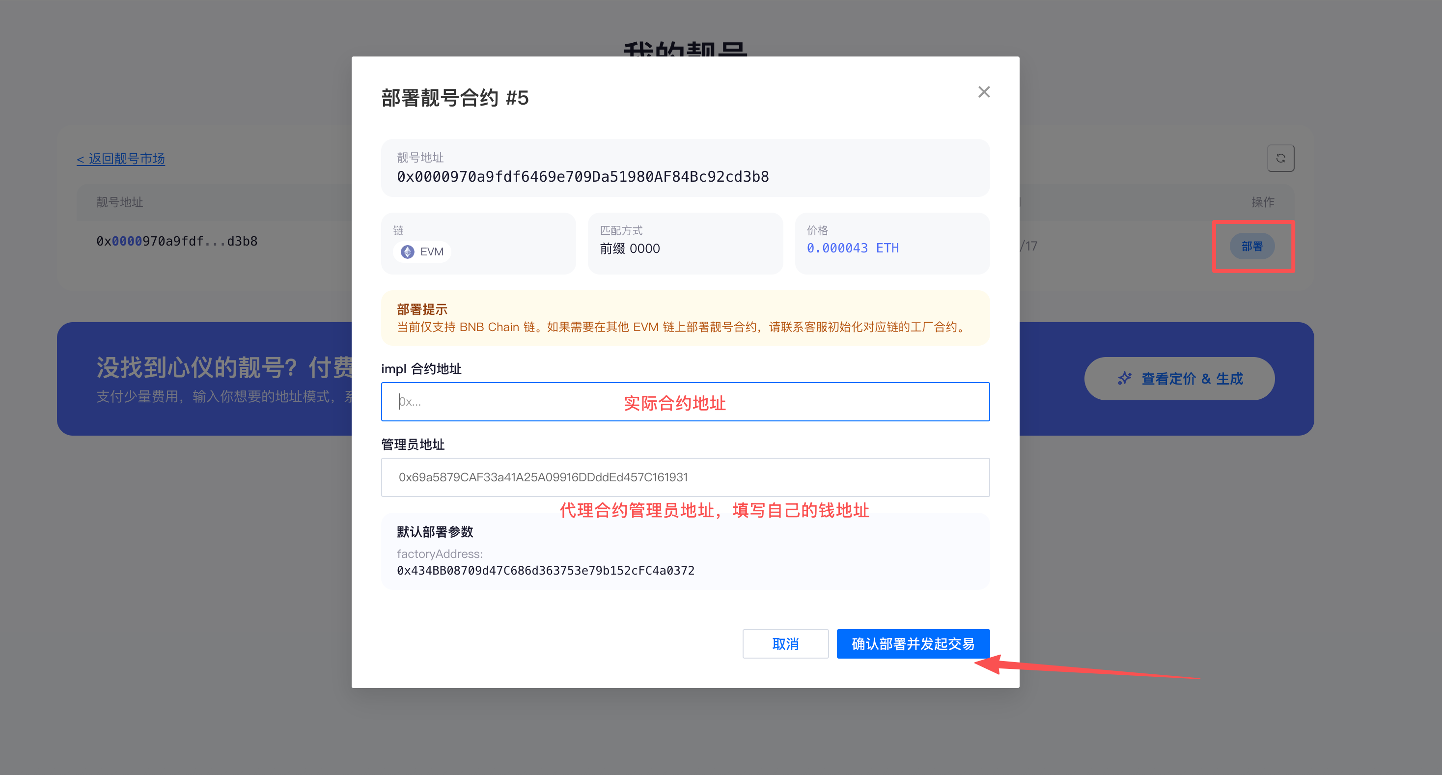 Go to the CPBOX Vanity Contract Address Marketplace, choose the vanity contract address you want to purchase or the custom vanity address you want to create.